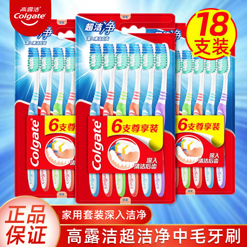 高露洁超洁净中毛牙刷18支前端刷毛深入清洁后齿学生家用批发正品